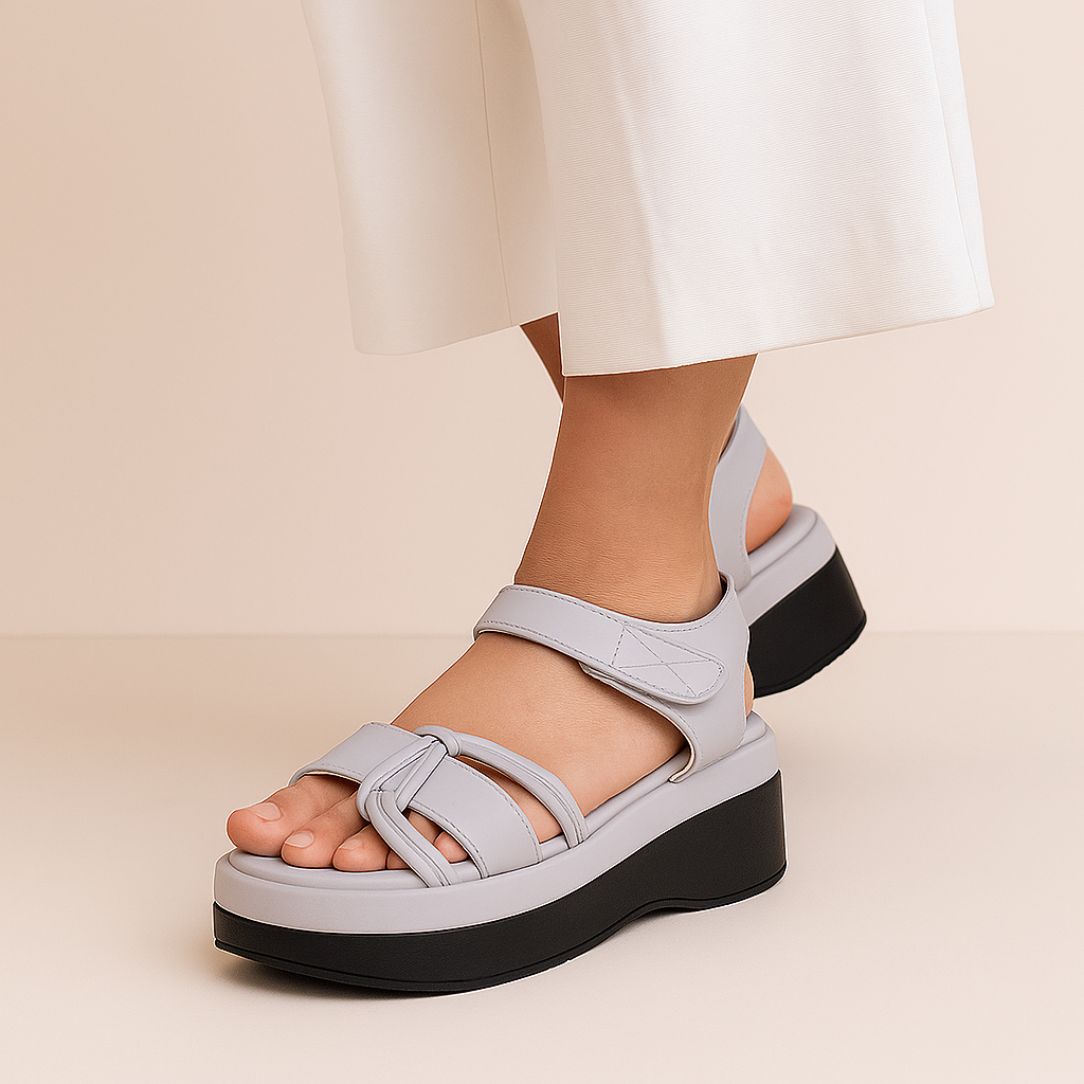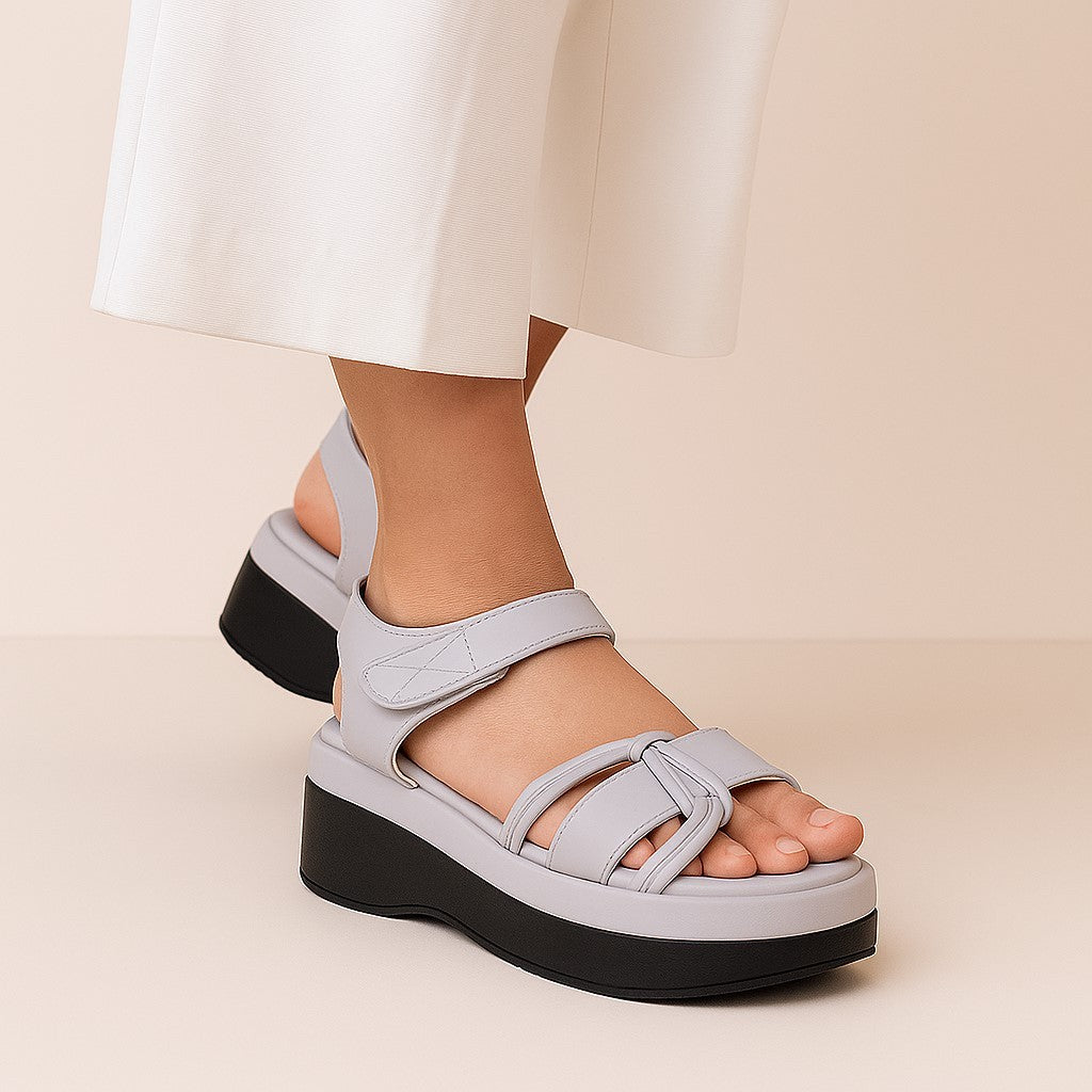 Elevate your everyday style with these Lilac Knotted Platform Sandals, crafted for all-day comfort and effortless chic. Made with soft vegan leather, featuring a trendy knotted strap design and a secure adjustable ankle Velcro strap, this pair delivers both style and stability. The lightweight chunky sole adds height without compromising comfort, making it perfect for daily wear, travel, casual outings, and summer looks.